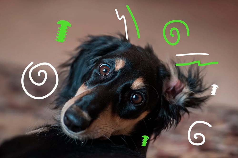- Наклон головы: Собака держит голову наклоненной в одну сторону.